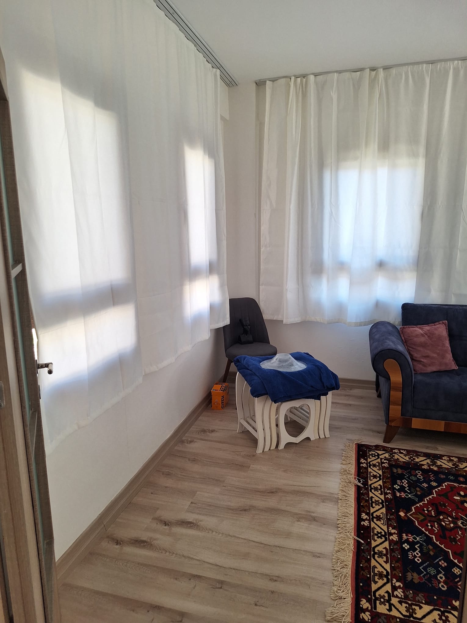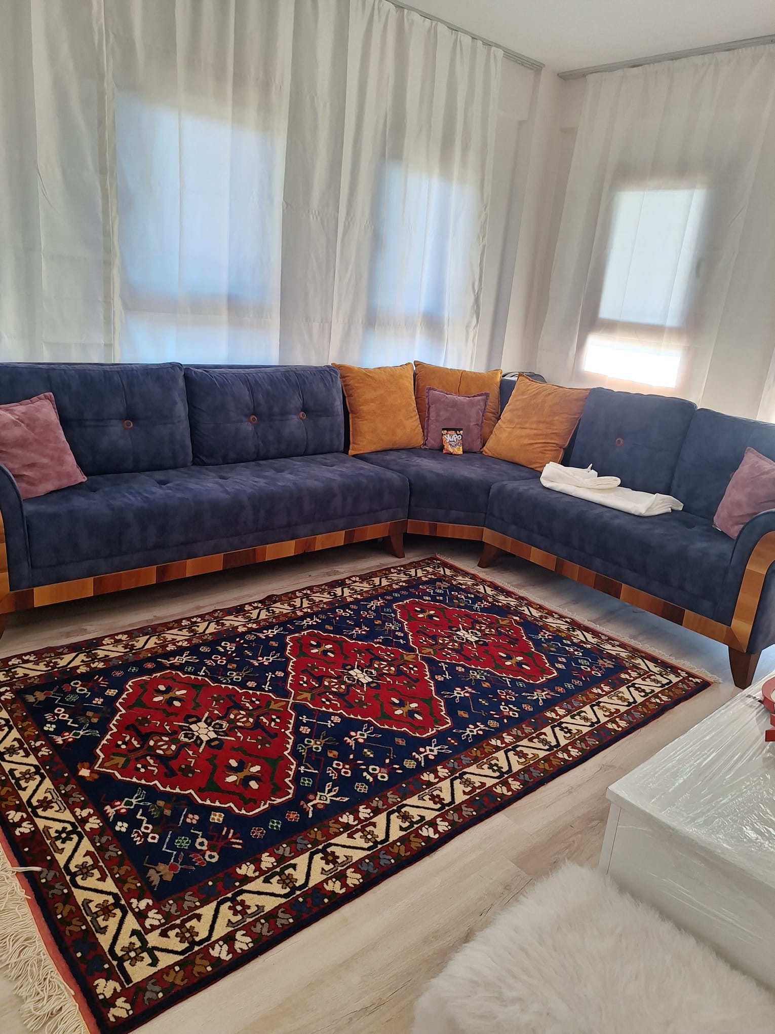 - Wohnzimmer: Gemütliche Sitzecke, Holzbalken, Ofen für kühle Abende.